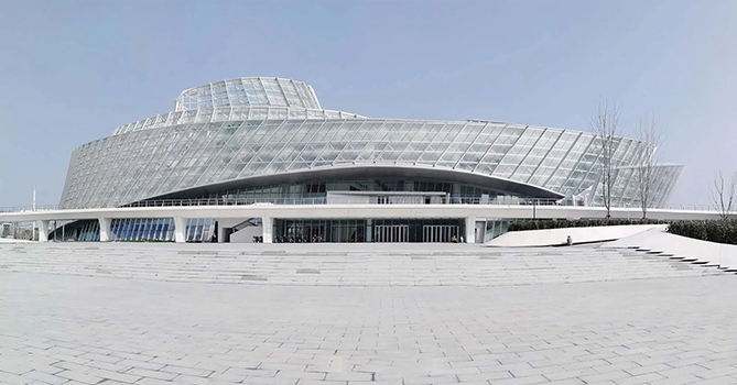 安徽阜陽(yáng)大劇院,建筑立意為“七彩玫瑰”,整體為一曲面的非線性形體,外幕墻弧面的流動(dòng)感及卷曲的屋面造型,異型鋼結(jié)構(gòu)從里至外逐層展開(kāi),寓意著劇院的文化藝術(shù)氣質(zhì)。